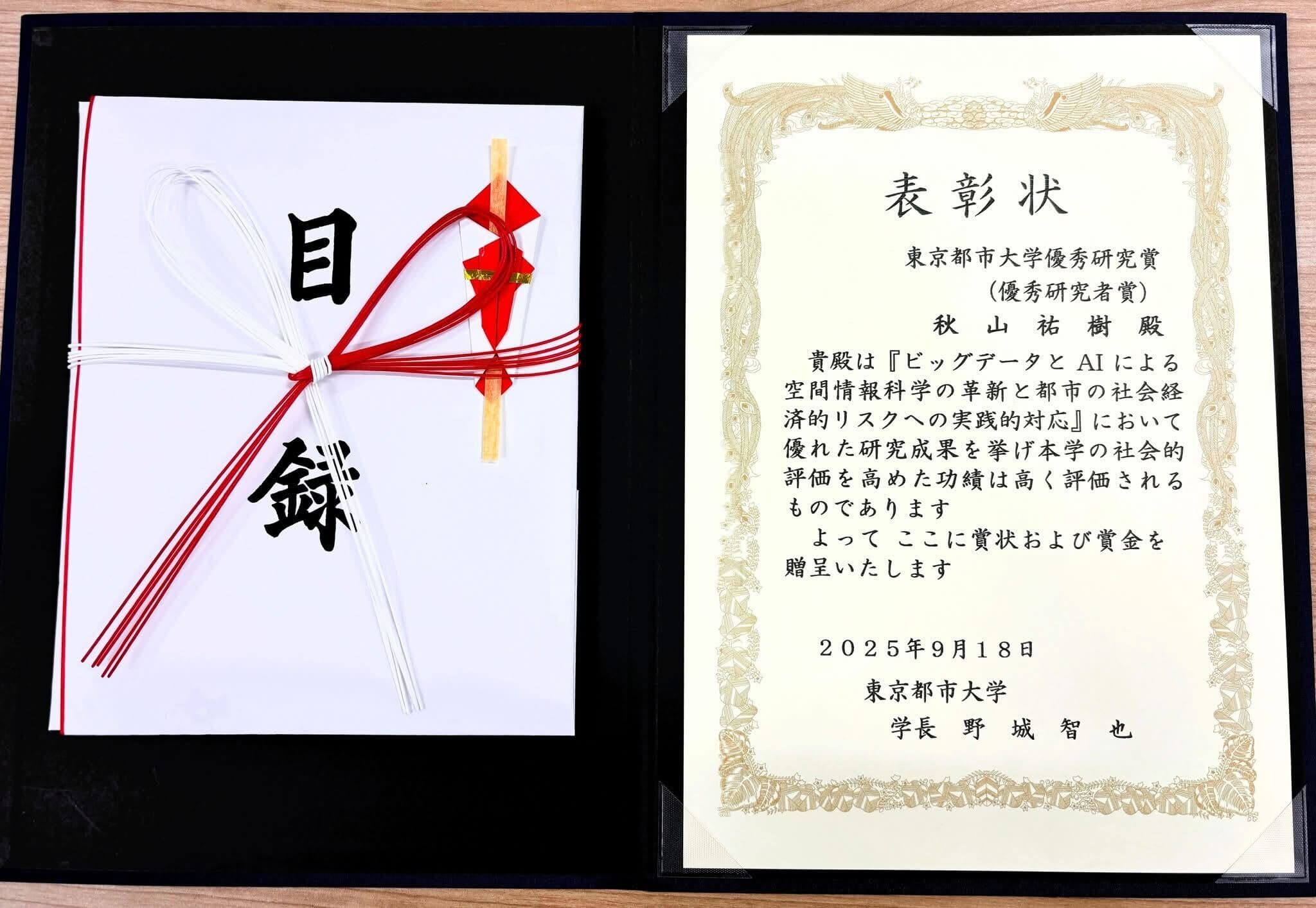 - 秋山先生が2025年度東京都市大学優秀研究賞(優秀研究者賞)を受賞しました。